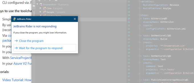 - There were a couple of instances where UI froze, and I had to restart the Rider.